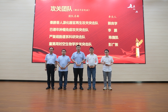 黨課報(bào)告后舉行了新黨員入黨宣誓儀式,全體參會(huì)黨員一起重溫了入黨誓詞,表彰了健康院“四強(qiáng)”黨支部和獲得中科院、廣東省等榮譽(yù)的先進(jìn)個(gè)人,舉行了研究院科技攻關(guān)團(tuán)隊(duì)的授牌儀式。