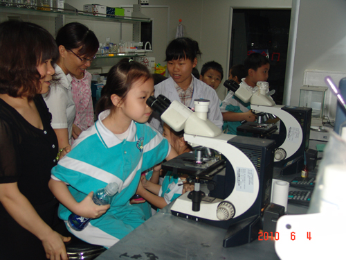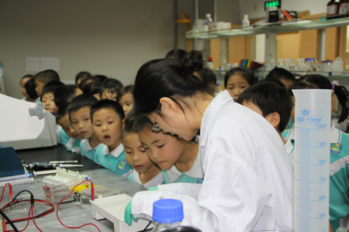 隨后,師生們興致勃勃地參觀了生物院公共儀器中心和感染與免疫研究中心。儀器中心工作人員詳細介紹了各種生物儀器的功能特點并作了現(xiàn)場實驗演示。學生們對各種實驗儀器充滿好奇,并提出許多感興趣的問題,工作人員進行了通俗易懂的講解。為加深同學們對生命基本形態(tài)的認識,感染與免疫研究中心工作人員還現(xiàn)場組織學生們獨立觀察顯微鏡下的正常細胞的形態(tài)與生長過程。