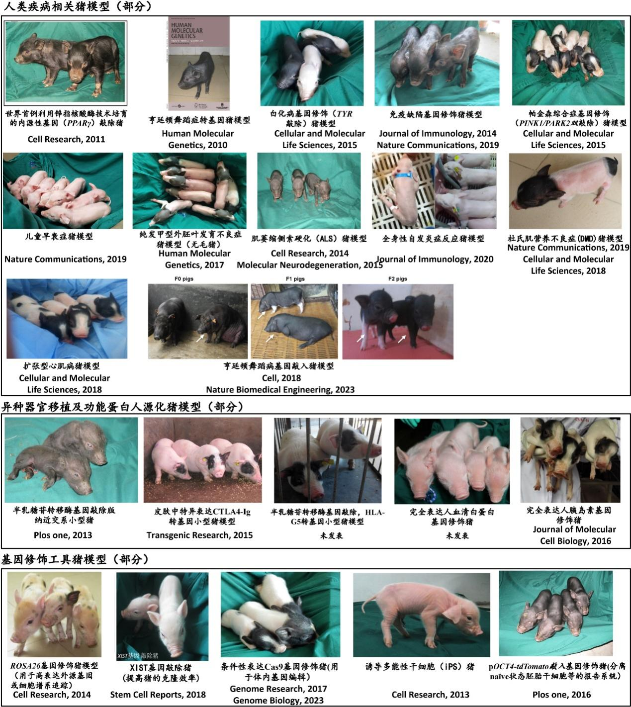 培育出70余種具有重要應(yīng)用價(jià)值的豬模型,建立了世界最大規(guī)模的基因編輯豬模型種群,其中基因敲入亨廷頓病豬模型亮相國(guó)家“十三五”科技創(chuàng)新成就展(Cell, 2018; Nature Biomedical Engineering, 2023; Nature Communications, 2019; Genome Biology, 2023; Genome Research, 2017; Cell Research, 2011, 2013, 2014等)