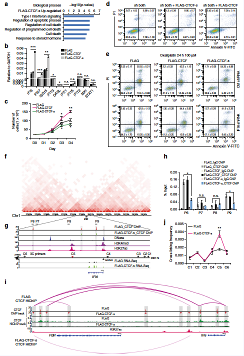 闡明了CTCF短的可變剪接體在調(diào)節(jié)染色質(zhì)高級結(jié)構(gòu)動態(tài)變化方面具有與經(jīng)典CTCF不同的特征,揭示了CTCF短的可變剪接體在調(diào)控細胞命運決定中的新功能(2019,Nature Communications)。