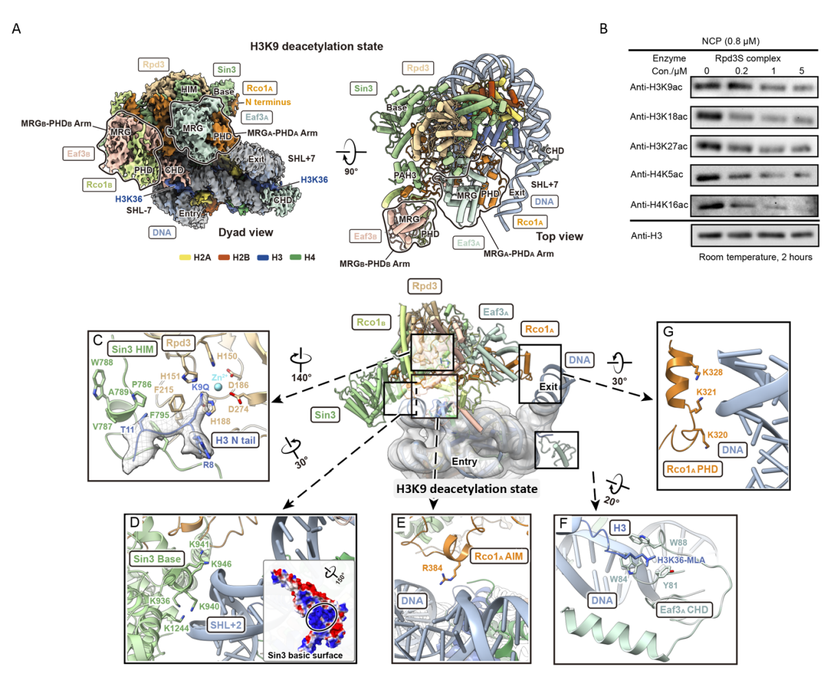揭示組蛋白去乙酰化酶Rpd3S核小體去乙?;虳NA linker收緊的分子機(jī)制