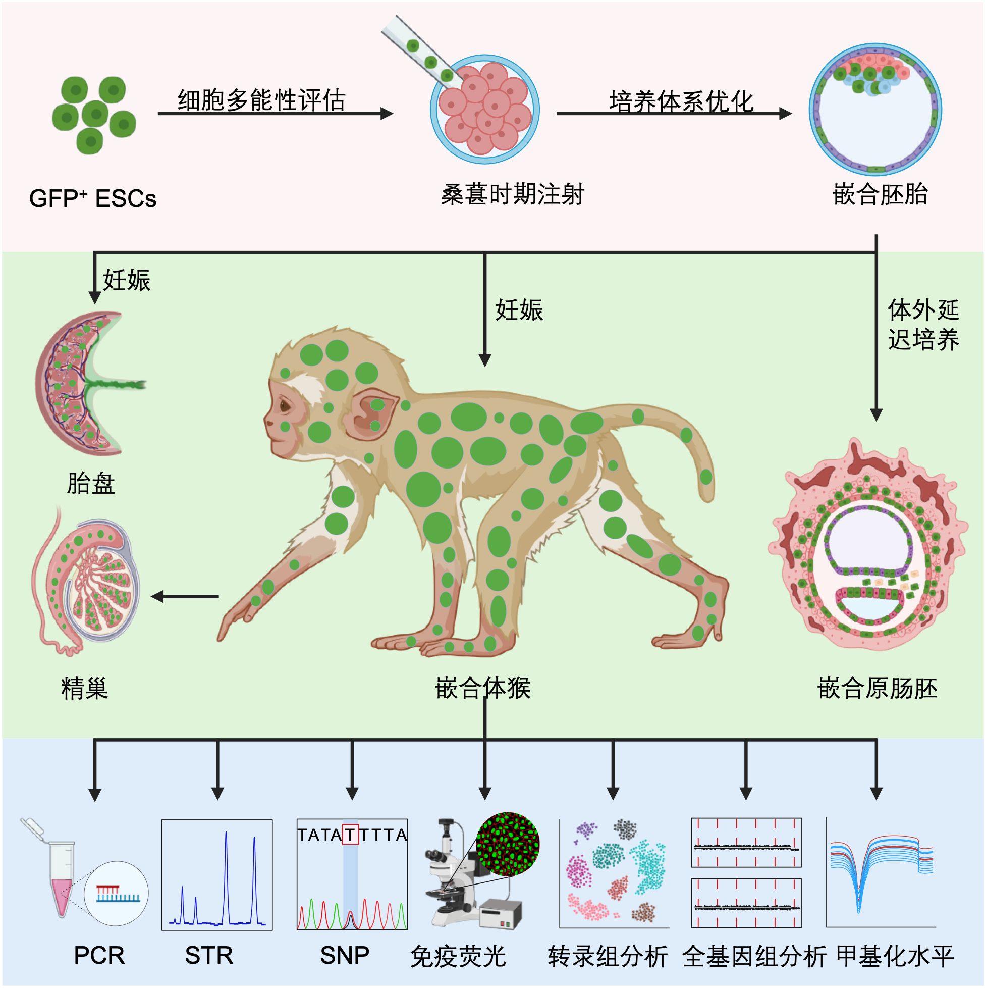 合作構(gòu)建的高比例胚胎干細(xì)胞嵌合體猴出生并存活