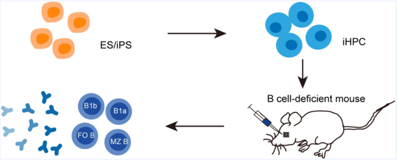 首次揭示了一套可以高效誘導干細胞分化產生B免疫譜系的轉錄因子組合,證明在不依賴造血干細胞存在的情況下可以通過再生手段移植重建功能完整的體液免疫系統(tǒng),實現(xiàn)抗原特異性體液免疫應答,并產生長期免疫記憶。這為開發(fā)B細胞療法治療B細胞相關疾病提供了理論支持和及技術借。