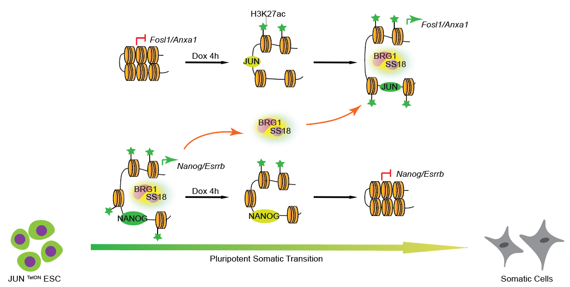 cJUN啟動(dòng)胚胎干細(xì)胞分化的表觀遺傳調(diào)控機(jī)制示意圖