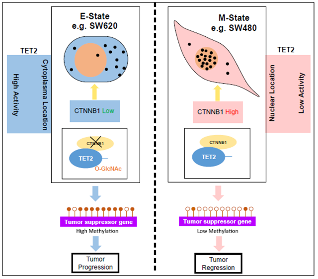 β-catenin介導TET2核轉位抑制腸癌進展機制示意圖