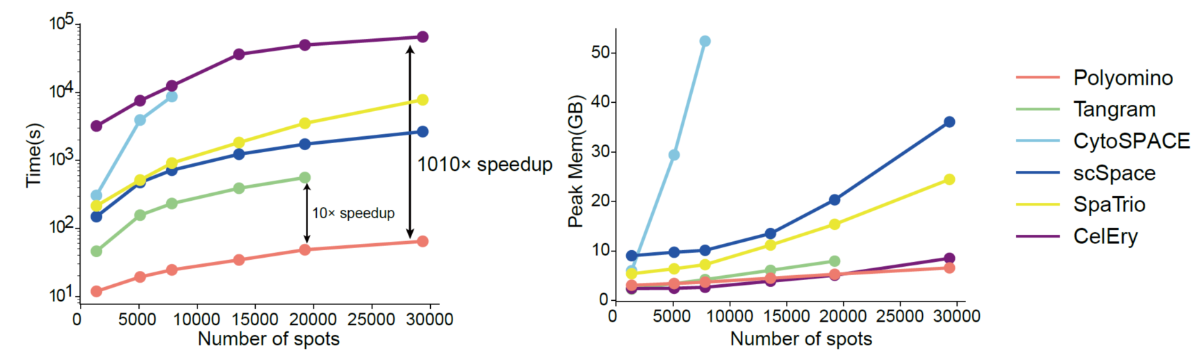 Polyomino通過多層區(qū)域約束實(shí)現(xiàn)單細(xì)胞空間定位,顯著提高了計(jì)算效率