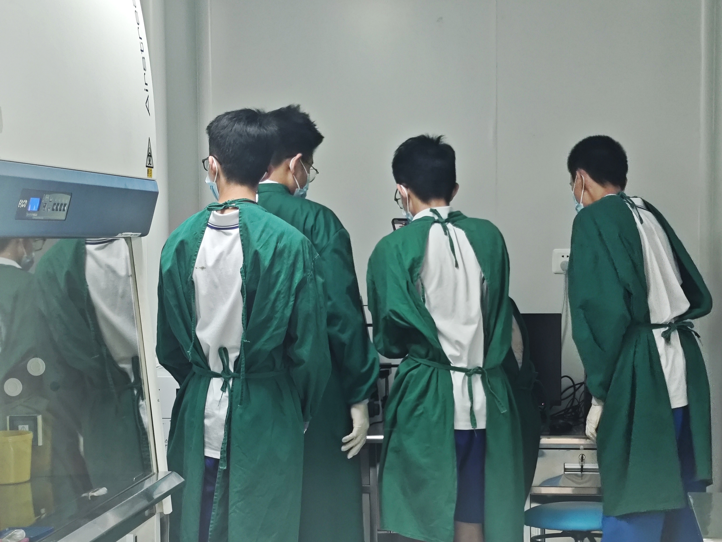 在科學(xué)城園區(qū),鄭輝研究員從何為細(xì)胞譜系、細(xì)胞譜系的研究情況、細(xì)胞譜系設(shè)施的建設(shè)等多個(gè)方面,深入淺出地介紹了生物醫(yī)藥未來(lái)的發(fā)展機(jī)遇,加深了同學(xué)們對(duì)細(xì)胞譜系設(shè)施的了解。梁麗寧副研究員系統(tǒng)講述了質(zhì)粒提取實(shí)驗(yàn),在實(shí)驗(yàn)室里,同學(xué)們近距離觀察先進(jìn)的科研設(shè)備,了解科研人員的日常工作流程,并在工作人員的指導(dǎo)下動(dòng)手操作,極大地激發(fā)了好奇心和求知欲。