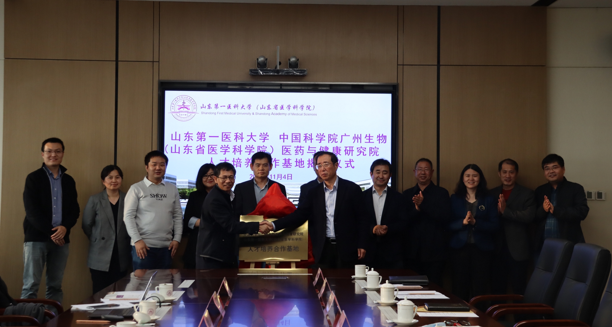 11月4日,廣州健康院與山東第一醫(yī)科大學(xué)(山東省醫(yī)學(xué)科學(xué)院)在山東第一醫(yī)科大學(xué)濟(jì)南主校區(qū)舉行人才培養(yǎng)合作基地揭牌儀式。廣州健康院院長陳新文、副院長潘光錦,山東第一醫(yī)科大學(xué)(山東省醫(yī)學(xué)科學(xué)院)黨委書記韓金祥出席儀式。