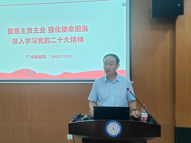 健康院黨委書記、副院長段子淵作題為《聚焦主責主業(yè) 強化使命擔當 全面落實黨的二十大會議精神》和《中國科學院重要文件精神學習及落實思考》2個報告,帶領與會人員深入學習黨的二十大精神和中科院人才工作相關文件精神。強調(diào)要把學習宣傳和全面貫徹落實黨的二十大精神作為當前和今后一個時期的首要政治任務,要將學習黨的二十大精神與抓好研究院的重點任務結合起來。研究院作為國家戰(zhàn)略科技力量主力軍的重要組成部分,要以國家戰(zhàn)略需求為導向,聚焦主責主業(yè),強化使命擔當,圍繞“十四五”規(guī)劃實施、細胞譜系大設施、國重重組三大攻堅任務,狠抓工作落實,加快關鍵人才的引進和培養(yǎng),確保對二十大精神的學習宣貫取得實效,各項工作更上新臺階,以實際行動為服務國家科技自立自強作出更大貢獻。