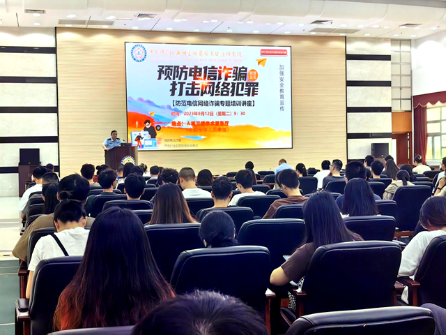 為增強(qiáng)全院師生員工防范電信網(wǎng)絡(luò)詐騙安全意識,提升反詐能力,9月12日,廣州健康院邀請黃埔區(qū)云埔街道派出所高達(dá)兵警官來院舉辦《預(yù)防電信詐騙、打擊網(wǎng)絡(luò)犯罪》專題培訓(xùn)講座。