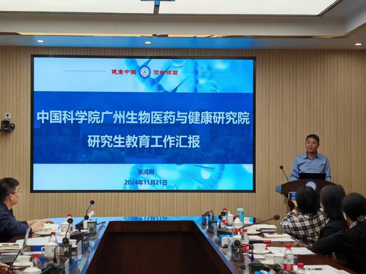 11月21日,中國科學(xué)院大學(xué)黨委常委、副校長金德鵬一行到廣州健康院調(diào)研研究生教育工作,校學(xué)生處處長王崗、校團(tuán)委書記陳睿、校學(xué)生工作部副部長王潔婷、校畢業(yè)生就業(yè)指導(dǎo)中心主任常宏武,以及中國科學(xué)院廣州分院人事人才處業(yè)務(wù)主管張正雍等陪同調(diào)研。健康院黨委書記、副院長張鴻翔和黨委副書記、紀(jì)委書記徐海熱情接待了金德鵬副校長一行。人事教育處、黨群工作處等部門負(fù)責(zé)人和研究生部、團(tuán)委的相關(guān)工作人員參加調(diào)研座談會(huì)。