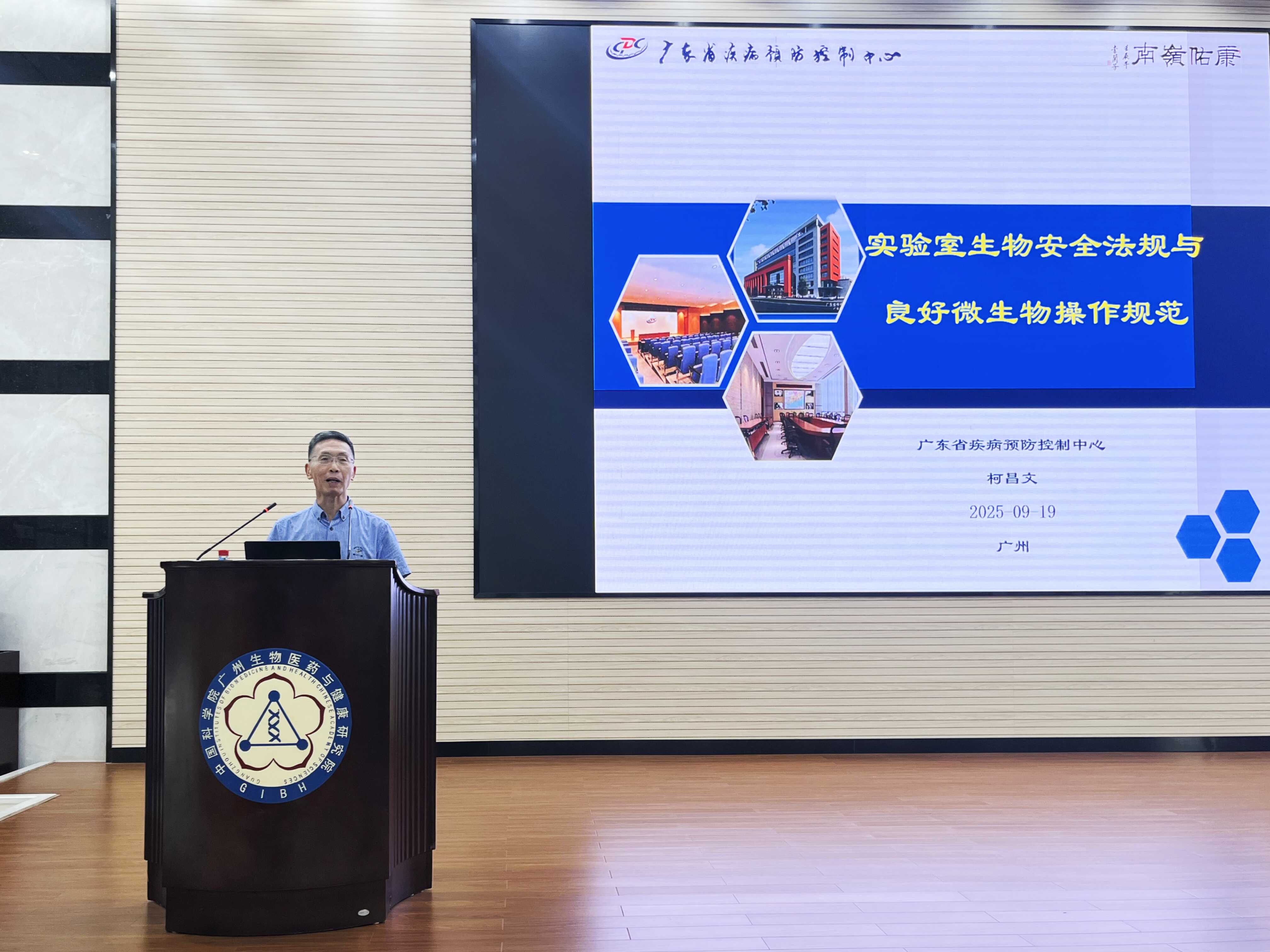 9月19日,中國科學(xué)院廣州生物醫(yī)藥與健康研究院(簡稱 “廣州健康院”)舉辦“2025年度生物安全專題培訓(xùn)”,特邀廣東生物疾病預(yù)防與控制中心柯昌文教授主講。培訓(xùn)會由馮立強(qiáng)研究員主持,全院150余名師生參加。