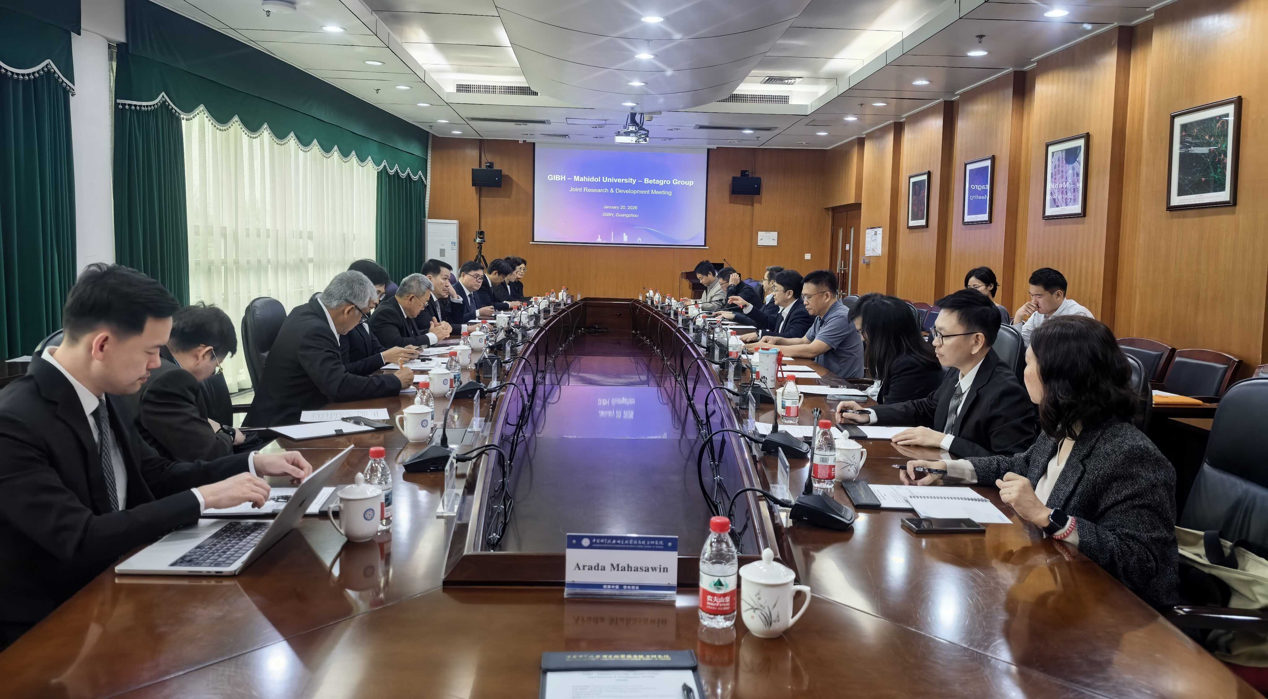 1月20日,泰國瑪希隆大學(xué)校長Piyamitr Sritara教授與 Betagro集團(tuán)首席執(zhí)行官Vasit Taepaisitphongse 率代表團(tuán)訪問中國科學(xué)院廣州生物醫(yī)藥與健康研究院(以下簡稱 “廣州健康院”),雙方圍繞異種移植、細(xì)胞治療等前沿領(lǐng)域的科研合作與人才聯(lián)合培養(yǎng)深入洽談,達(dá)成多項(xiàng)共識。