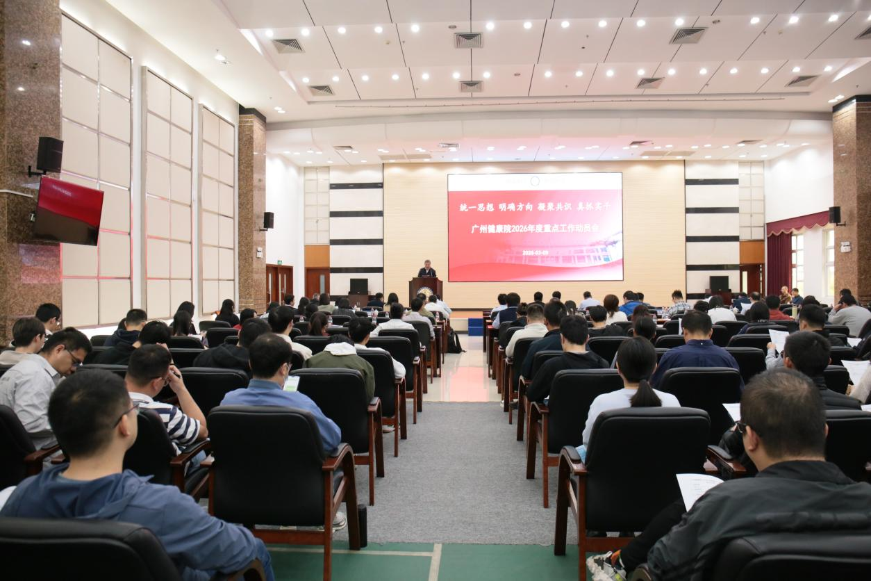 為深入貫徹落實(shí)2025年中國(guó)科學(xué)院冬季黨組擴(kuò)大會(huì)議和2026年度院工作會(huì)議精神,以及傳達(dá)學(xué)習(xí)廣東省、廣州市高質(zhì)量發(fā)展大會(huì)精神,統(tǒng)籌推進(jìn)“十五五”規(guī)劃編制和啟動(dòng)實(shí)施等各項(xiàng)重點(diǎn)工作任務(wù),3月9日,中國(guó)科學(xué)院廣州生物醫(yī)藥與健康研究院(以下簡(jiǎn)稱“廣州健康院”)在科學(xué)城園區(qū)召開2026年度重點(diǎn)工作動(dòng)員會(huì)。