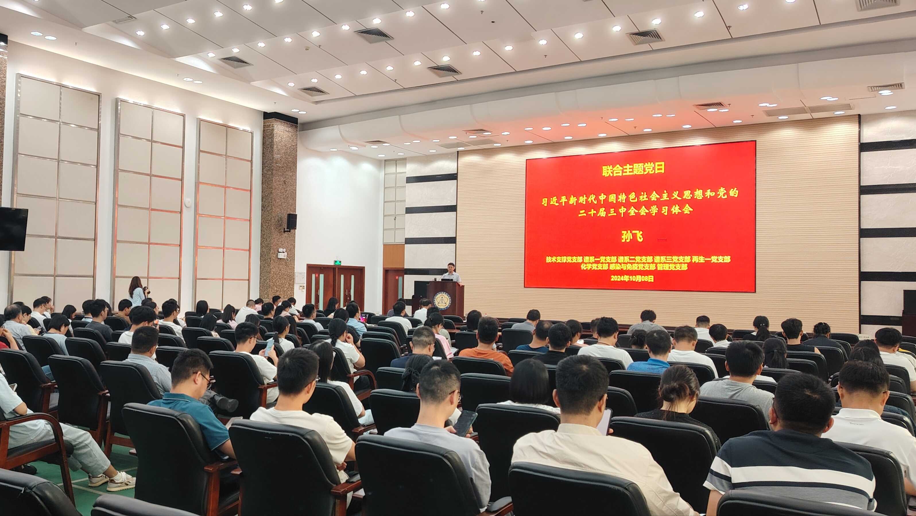 10月8日下午,中國科學(xué)院廣州生物醫(yī)藥與健康研究院技術(shù)支撐黨支部聯(lián)合其他7個(gè)黨支部開展學(xué)思想促發(fā)展主題黨日,黨委委員、副院長孫飛作黨課報(bào)告,報(bào)告會由黨委副書記、紀(jì)委書記徐海主持。10月8日下午,中國科學(xué)院廣州生物醫(yī)藥與健康研究院技術(shù)支撐黨支部聯(lián)合其他7個(gè)黨支部開展“學(xué)思想 促發(fā)展”主題黨日,黨委委員、副院長(主持工作)孫飛作黨課報(bào)告,報(bào)告會由黨委副書記、紀(jì)委書記徐海主持。孫飛同志以《習(xí)近平新時(shí)代中國特色社會主義思想和黨的二十屆三中全會精神學(xué)習(xí)體會》...