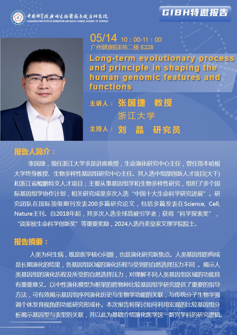 2025年5月14日特邀報(bào)告:Long-term evolutionary process and principle in shaping the human genomic features and functions