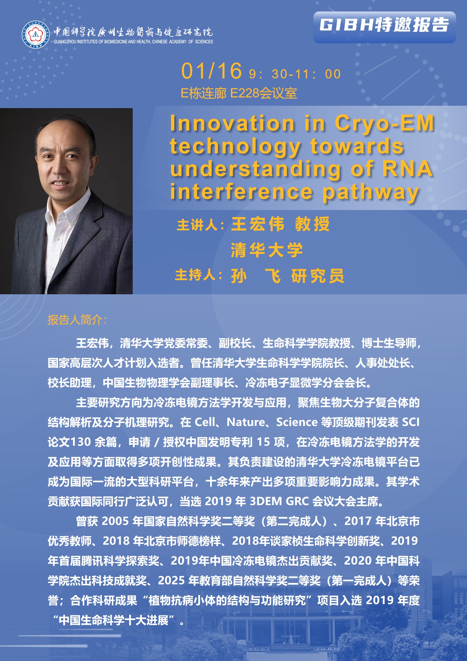 2026年1月16日特邀報告:Innovation in Cryo-EM technology towards understanding of RNA interference pathway