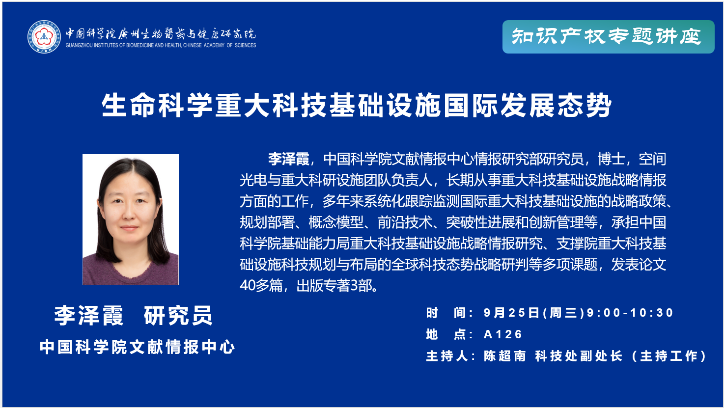 2024年9月25日知識產(chǎn)權專題講座:生命科學重大科技基礎設施國際發(fā)展態(tài)勢;重大科技基礎設施知識產(chǎn)權相關問題探討