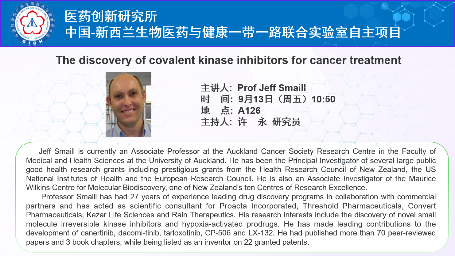 2024年9月13日學(xué)術(shù)講座:The discovery of covalent kinase inhibitors for cancer treatment