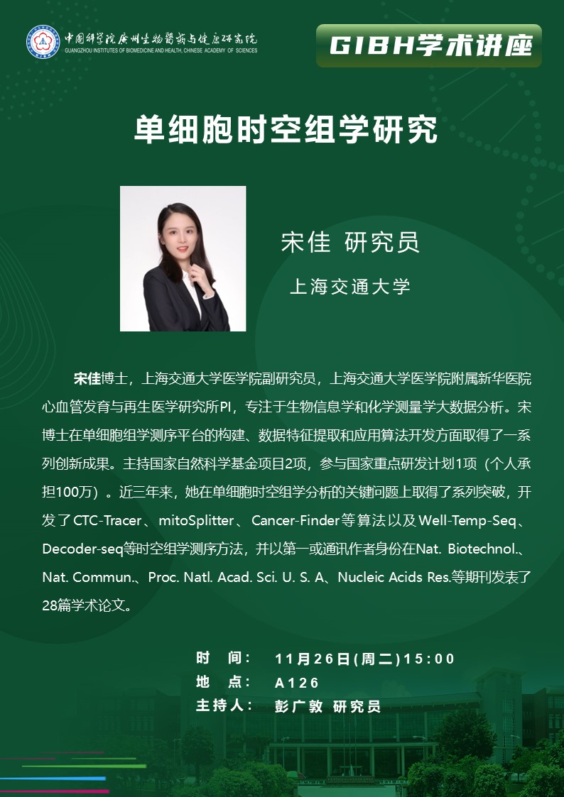 2024年11月26日GIBH學(xué)術(shù)講座:?jiǎn)渭?xì)胞時(shí)空組學(xué)研究