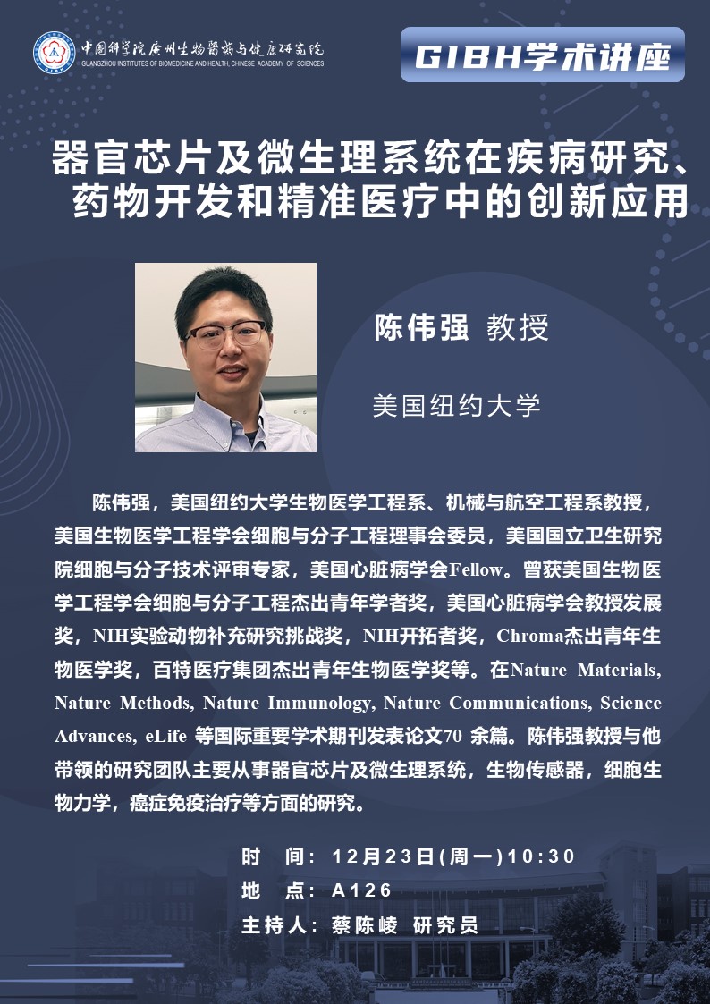 2024年12月23日學術講座:器官芯片及微生理系統(tǒng)在疾病研究、藥物開發(fā)和精準醫(yī)療中的創(chuàng)新應用