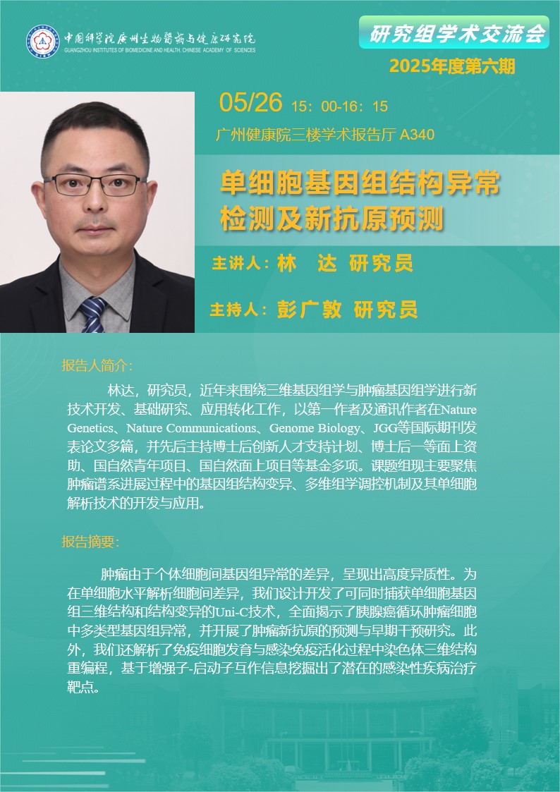 2025年5月26日研究組學(xué)術(shù)交流會(2025年度第六期):單細胞基因組結(jié)構(gòu)異常檢測及新抗原預(yù)測