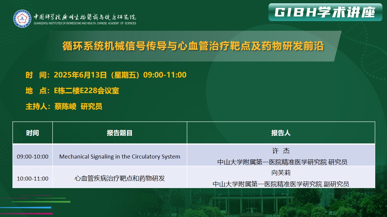 2025年6月13日學(xué)術(shù)講座:循環(huán)系統(tǒng)機(jī)械信號傳導(dǎo)與心血管治療靶點(diǎn)及藥物研發(fā)前沿