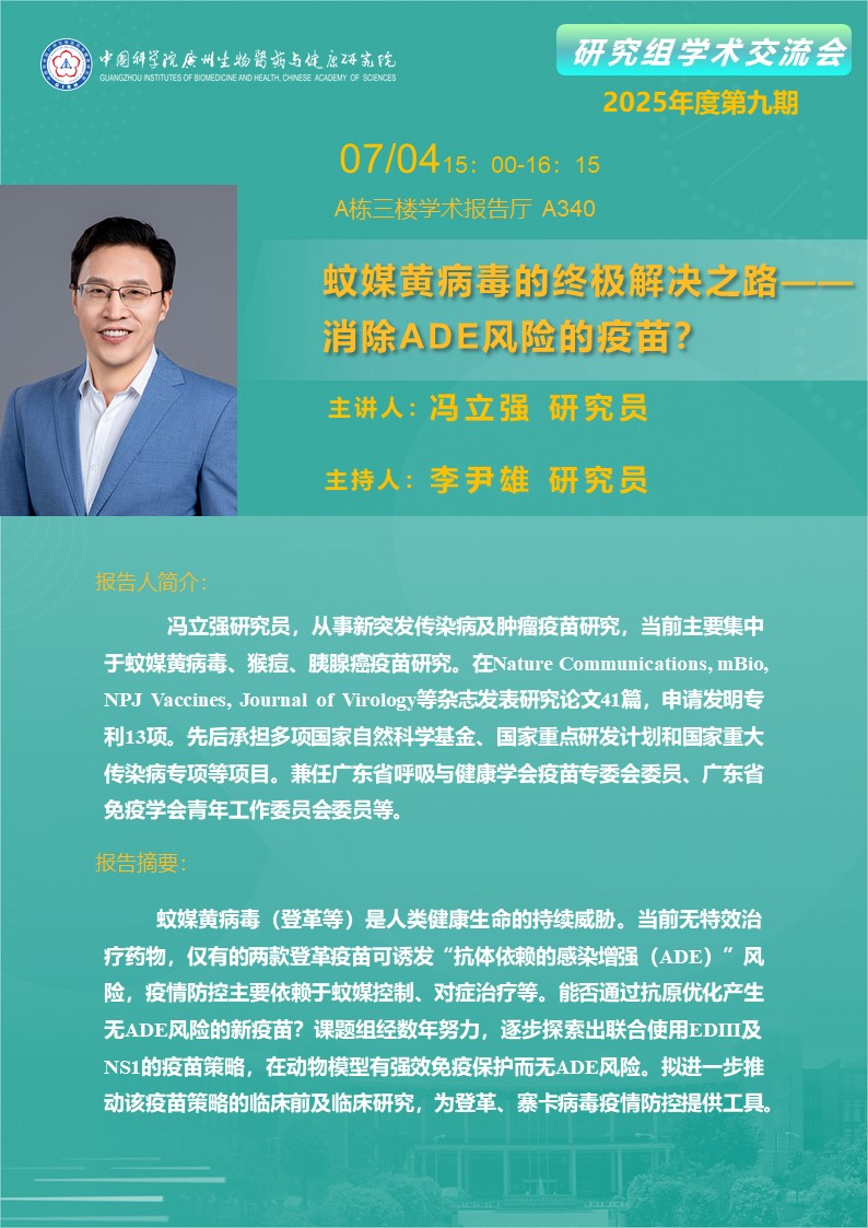 2025年7月4日研究組學(xué)術(shù)交流會(huì)(2025年度第九期):蚊媒黃病毒的終極解決之路——消除ADE風(fēng)險(xiǎn)的疫苗?