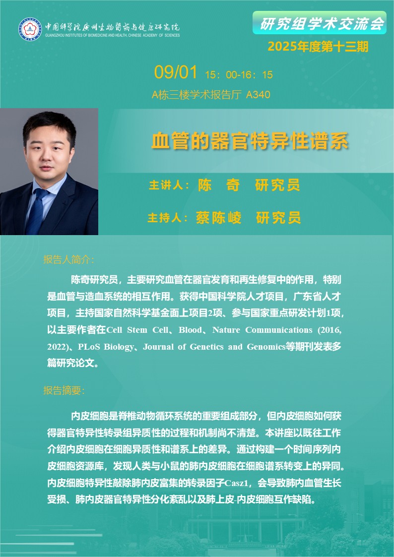 2025年9月1日研究組學(xué)術(shù)交流會(2025年度第十三期):血管的器官特異性譜系