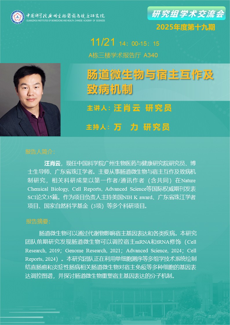 2025年11月21日研究組學(xué)術(shù)交流會(huì)(2025年度第十九期):腸道微生物與宿主互作及致病機(jī)制