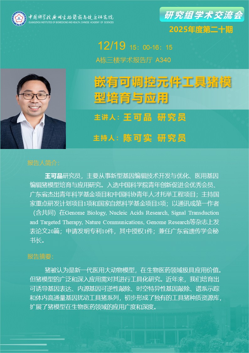 2025年12月19日研究組學(xué)術(shù)交流會(2025年度第二十期):嵌有可調(diào)控元件工具豬模型培育與應(yīng)用